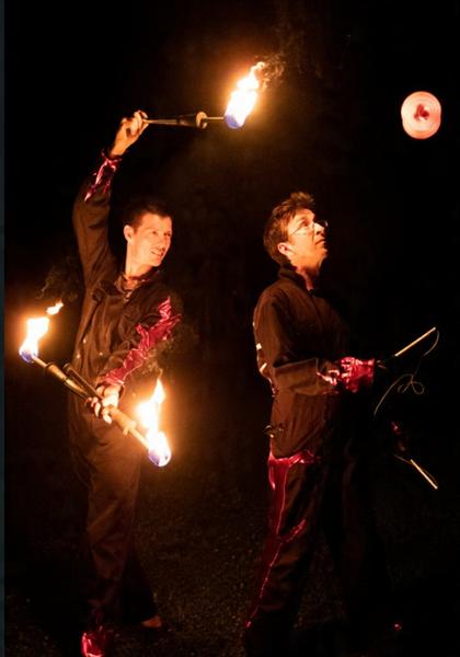 Un duo d’artistes de la compagnie Jongl’Anime offre un spectacle plein d’énergie, de précision et d’humour.
