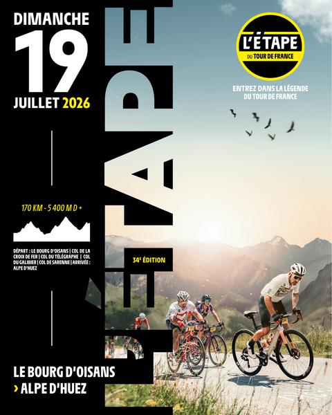 With 170 km and 5400 m of ascent on the program, 16,000 amateur cyclists will experience the Tour de France in a unique way on the 20th stage of the Tour de France 2026 from Le Bourg-d'Oisans to l'Alpe d'Huez.